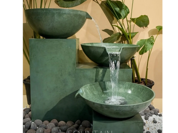 A sleek, minimalist water fountain featuring a Luxury home fountain beautifully crafted bowl with backyard cascade fountain or bubbling water, perfect for modern and traditional decor styles.